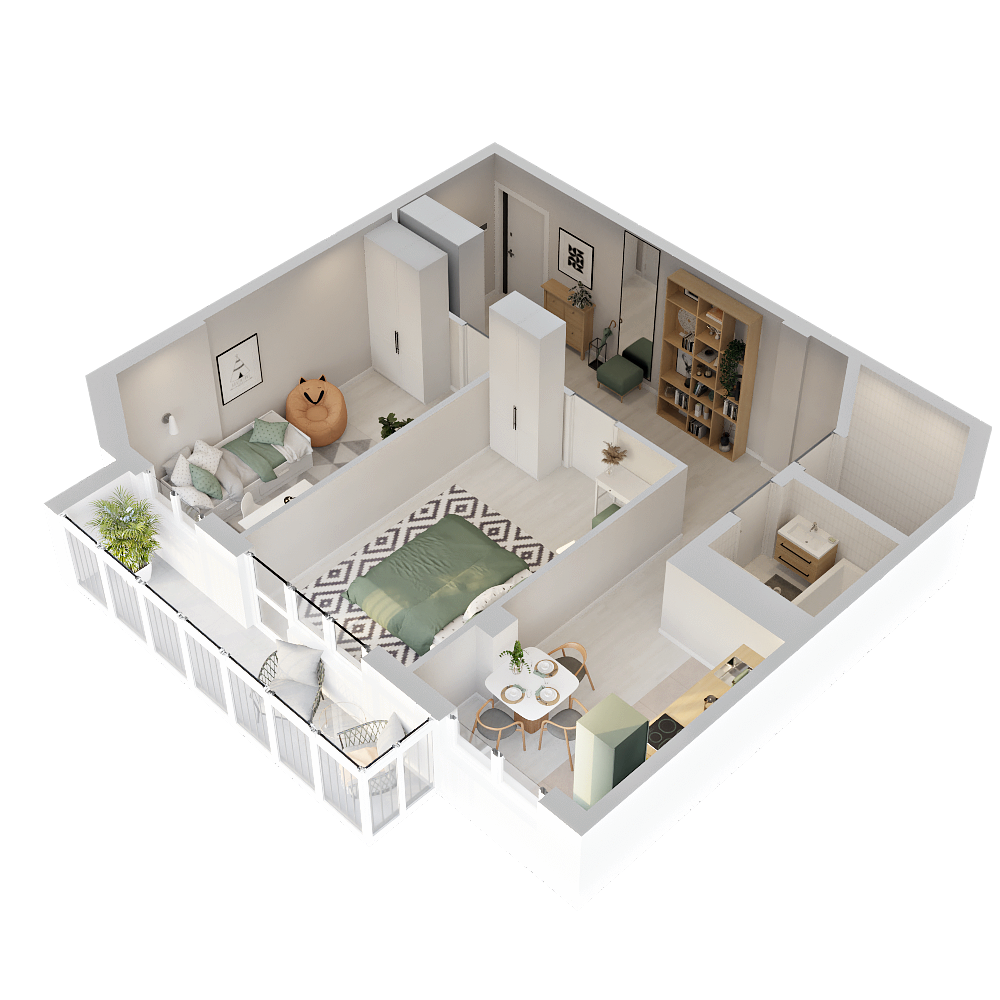 Максимальная площадь и планировка квартиры для тех, кто ценит пространство и комфорт. Квартира-«распашонка» с окнами на две стороны дома. Удачная планировка обеспечивает максимум естественного освещения и отличную вентиляцию. Вам обеспечен комфортный микроклимат в любое время года.